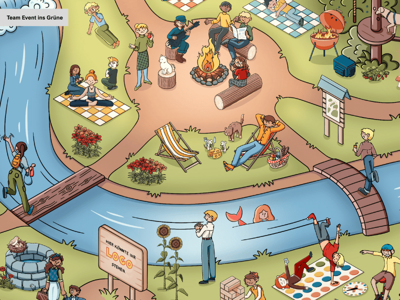 Wir integrieren Ihr Logo, Ihre Slogans und typische Produkte in die Wimmel-Szenen. So entdecken Mitarbeitende, Partner und Kund:innen Ihr Unternehmen auf ganz neue Weise – und stets mit einem Lächeln.
